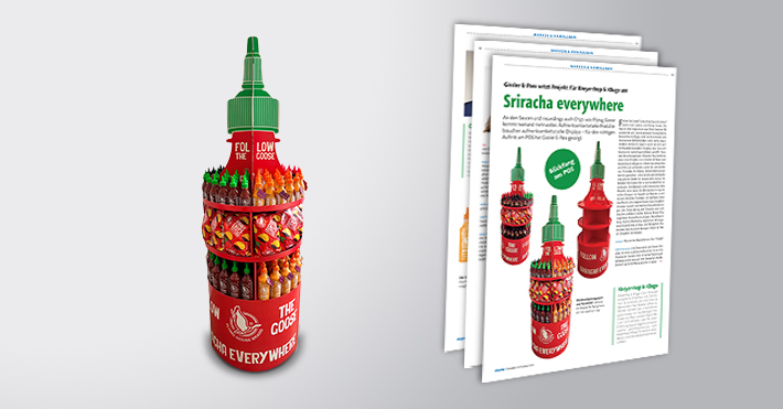 Lesen Sie hier wie das einzigartige Display in Form der Sriracha-Flasche die verschiedenen Produkte der Marke verbindet und ein echtes Ausrufezeichen am POS setzt.